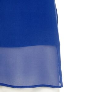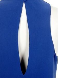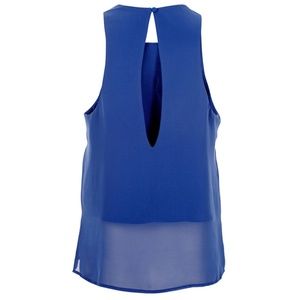 Beautiful top with lining from the Australian brand Finders Keepers. The top is with a wide armhole and is closed at the back with a blue fabric-upholstered button, which also creates a hole for the back. The top has a sewn in lining in the top and is sheer at the bottom.