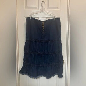 Starwear Jeans Denim Tiered Lace Up Front Skirt Women’s Size 16 100% Cotton