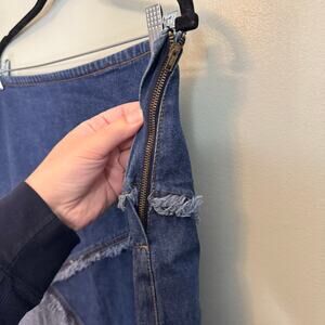 Starwear Jeans Skirt Womens 17/18 Blue Denim Midi Two Tone Patchwork Raw Hem