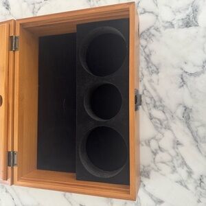 Elegant wooden storage box with a secure lock. Perfect for organizing small items.