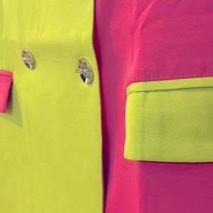 Stasia Neo-Tone: Bright Neon Green & Fuchsia Pink Double Breasted Blazer Dress