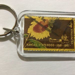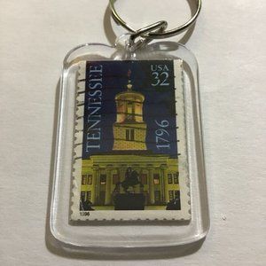 This listing is for one (1) State Keychain made from a recycled real vintage stamp!