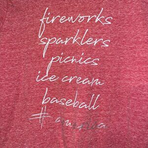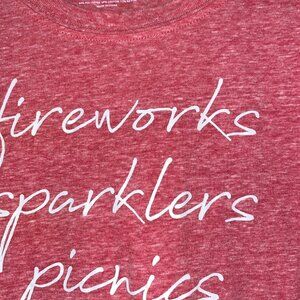 State Of Mine Womens Red Graphic T-Shirt Fireworks Sparklers Picnics Ice Cream B