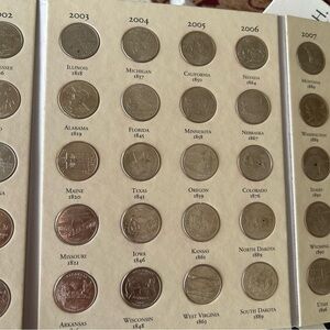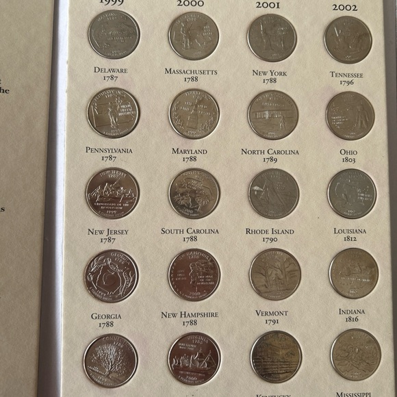 Complete set of state quarters from 1999 to 2002. Features detailed engravings of each state.