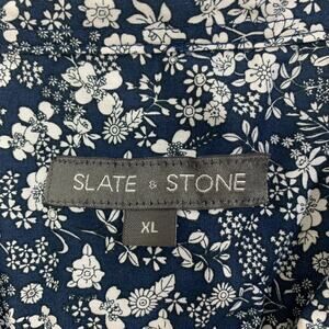 State & Stone Shirt Mens XL Navy White Floral Cotton Button Up Short Sleeve