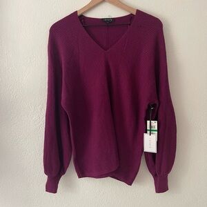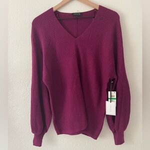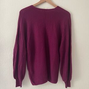 State Women's Rib-Knit Bubble Sleeve Long Sleeve V-neck Sweater Size L