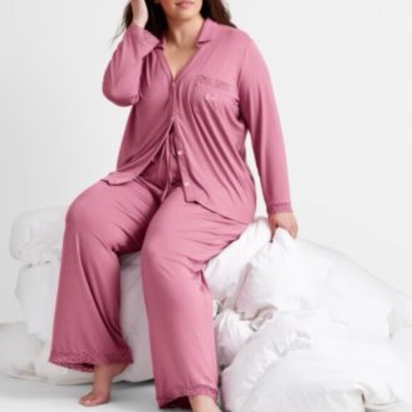 State of Day Women's Collared Knit Pajama Set Love Lace Pink