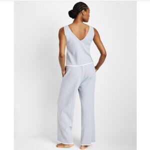 Details: Relaxed fit, sleeveless V-neck top, wide-leg pull-on pants, matching lounge aesthetic