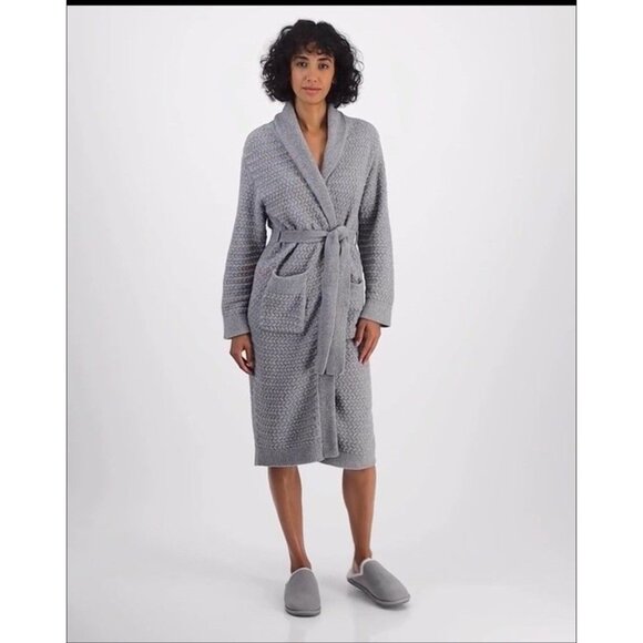 State of Day Women’s Textured Shawl-Collar Robe – Chiseled Gray M/L –NWT