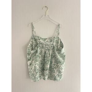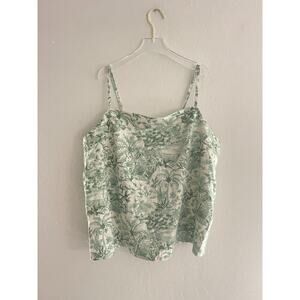 State of Day XL Tank Top Linen Blend Sage Green & Cream Floral Palm Beach Boho
