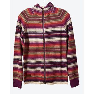 State of Elevenate Women's E11 Small Full Zip Striped Hooded Sweater Fuschia Red