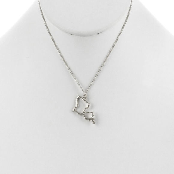 State of Louisiana Necklace, Silver Tone, hammered cut out pendant. 16" chain with 2" extender to fit up to 18".