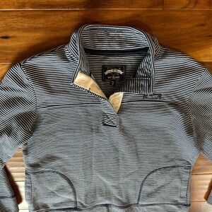 Navy and white striped pullover sweatshirt with button 1/4