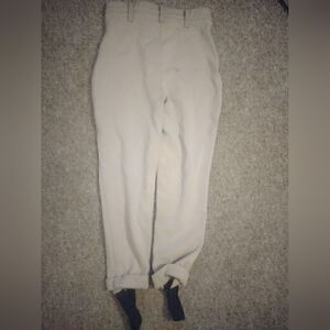 State Line tan riding stirrups pants, size 12,(on zipper flap small light discoloration spot and dark mark on light side buttock cheek)