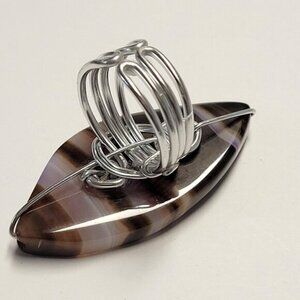 Statement Agate Cabochon Adjustable Band Handmade Semi Precious Ring