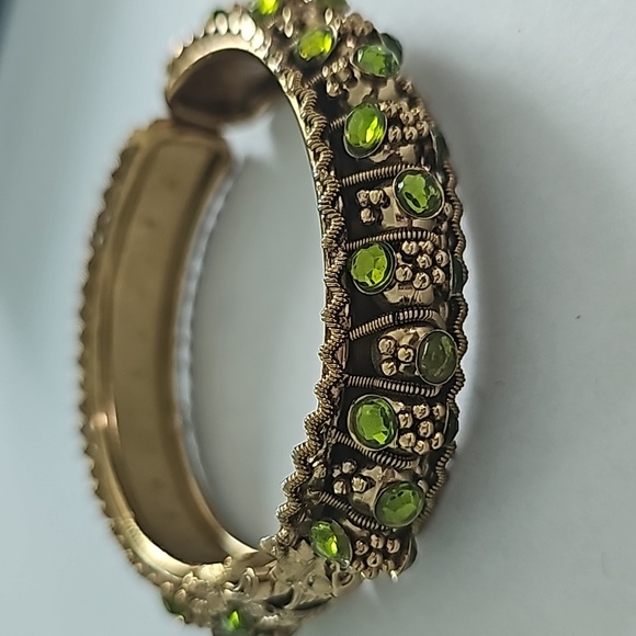 💎New, Goldtone cuff bracelet with green stones