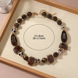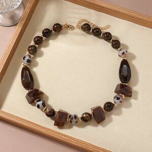 Statement Brown & Black Irregular Acrylic Choker Necklace w/ Gold Accents