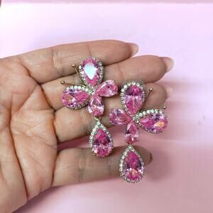 Statement Butterfly Earrings Candy Pink Zirconia Crystals