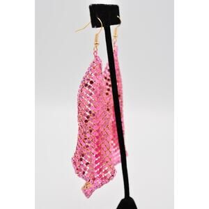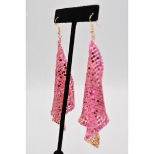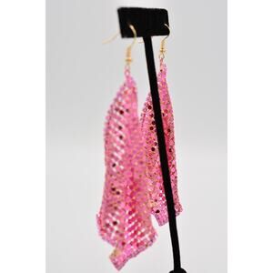 Statement Chainmail Earrings Barbie Pink Rhinestone Crystal Gold Dangle Y2K 9D