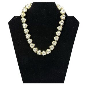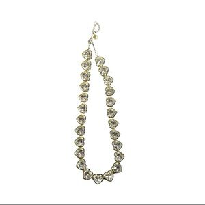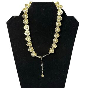 This stunning piece features a delicate gold-tone brass chain, adjustable from 16 to 18 inches for a perfect fit. Adorned with sparkling glass heart-shaped crystals, it brings a touch of romance and glamour to any ensemble.