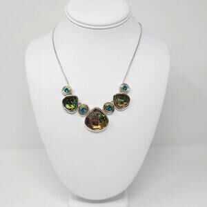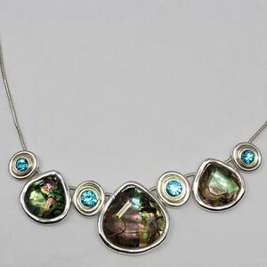 Statement Collar Necklace Abalone Shell Blue Green Silvertone Jones New York