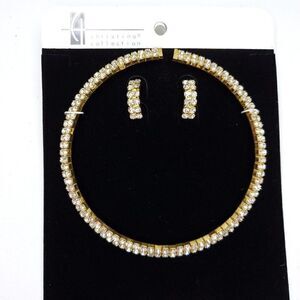 Statement Collar Necklace Earring Set Clear Crystals Rhinestones Goldtone