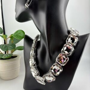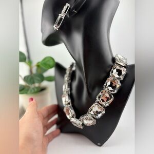 Shine bright with this stunning rhinestone jewelry set that exudes elegance and confidence. Featuring large faceted crystals that catch every light, this matching necklace and earring duo is perfect for special occasions or adding a touch of glamour to any outfit.