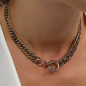 Uniquely designed cadena, curb Cuban gold plated chain statement toggle o ring chunky choker.