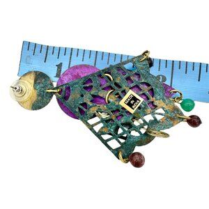 Statement Dangle Earrings Purple Green Geometric Brass Details Gemstone Accents