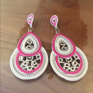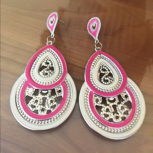 This hot pink, white and silver pair is perfect for the Spring and Summer seasons! They're bright and a definite pop of color to any outfit! They're sweet and playful but still super classic and chic! They are handmade, (not by me) and so unique!
