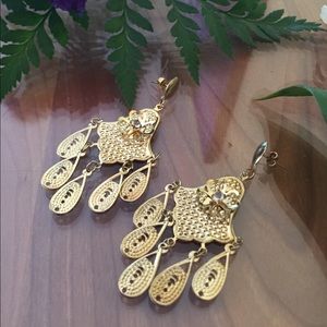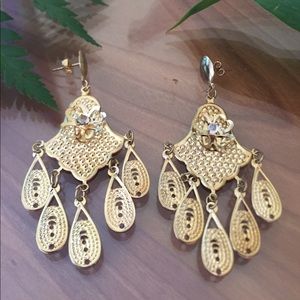 These beautiful, gold plated, chandelier earrings have a very "Princess Jasmine" like feel to them! They will spice up just about any outfit in your wardrobe! They look stunning on sun kissed skin but are perfect for any season!