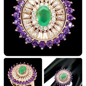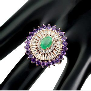 Statement Emerald Ring, Estate Gemstone Ring, Cocktail Vintage Ring, Bling Ring