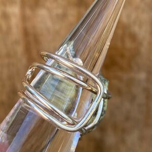 Brand new Mexican geode druzy statement ring featuring natural crystal shimmer set on an adjustable silver-plated brass wire band.