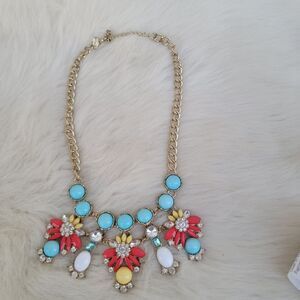 Statement Gold Tone Mulit Color blue , Orange, Yellow & Wht Bib Necklace