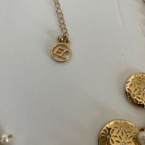 Statement Goldtone Necklace Medallions Chain Faux Pearls Crystals Erica Lyons