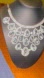Stunning drop necklace with drop shaped glass stones, surrounded by clear crystals. The backside is covered by felt which makes it easier and more comfortable to wear.