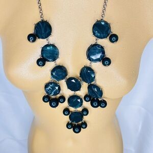 Statement Green Marble Necklace Acrylic Dangle Cabochons Beads Silver Bib 4751