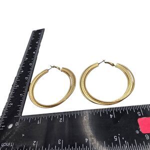 Statement Hoop Earrings Pierced Intricate Textured Gold Tone Hinged Closure