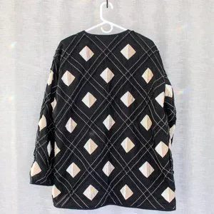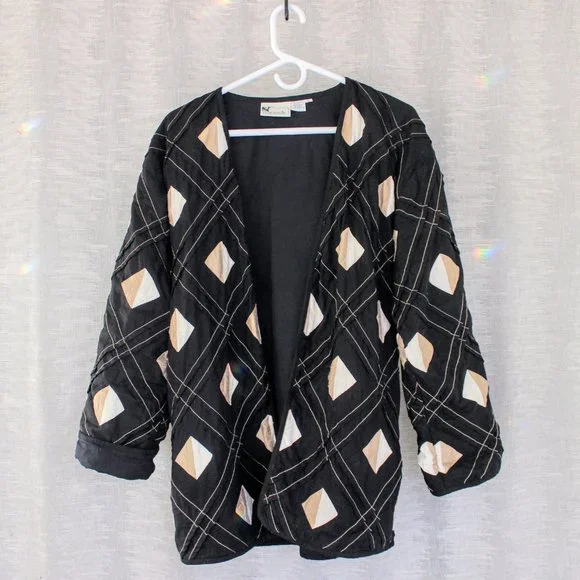 Vintage long oversized jacket. Has silk diamond shaped pattern on it.