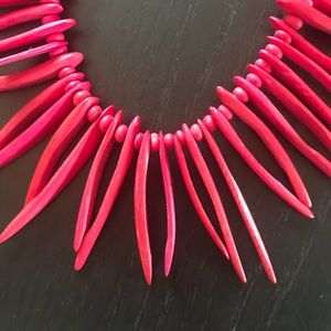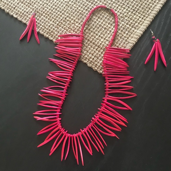 Such a beautiful & lightweight statement piece! This 3 piece set comes in hot pink with an added turquoise wooden bead in each one of the earrings. I believe the pieces are made of an extremely lightweight wood. Maybe teakwood. Again I’m not sure but regardless.....it’s a strong beautiful statement piece. One of the earrings has a scratch on it. (Fead in last pic). Can easily be colored in. 😍🌺🌸🌼