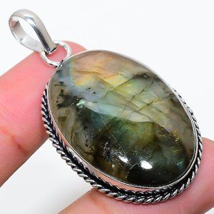 Statement Labradorite Gemstone Pendant set in 925 Sterling Silver Bezel, NWT