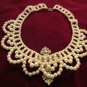 Statement Micro Pearl Beads Collar Choker Bib Necklace