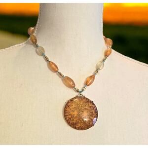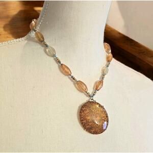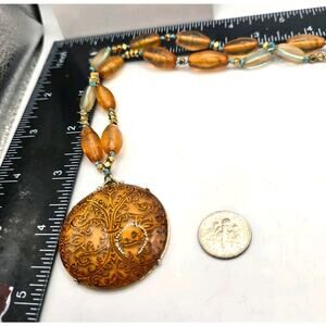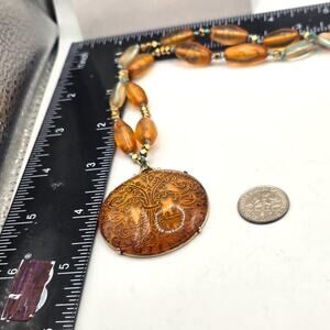 Statement Monet Retro Necklace Elongated Light Brown Gold Tone Beads 16" 18" Long. Adjustable.