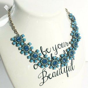 Statement Necklace 20" Blue Floral Turquoise Rhinestone Boutique Jewelry