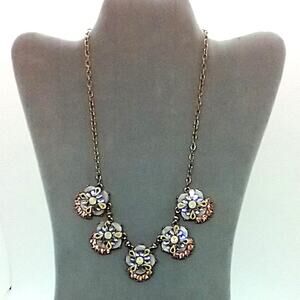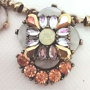 Statement Necklace 5 Rhinestone Sections Peach Gold Clear Stones Brass Tone