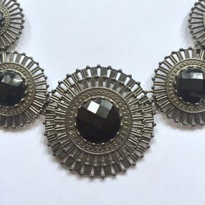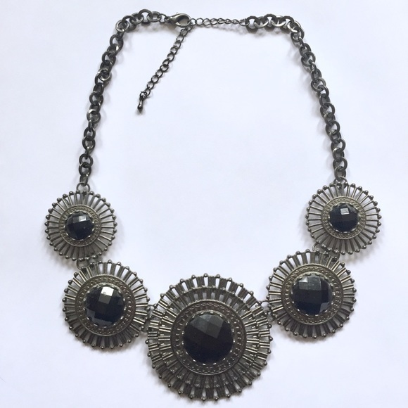 Stunning pewter statement necklace with black multifaceted stone accents. Takes any outfit to the next level!
