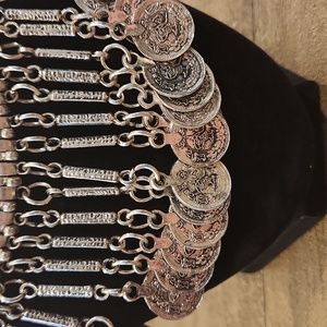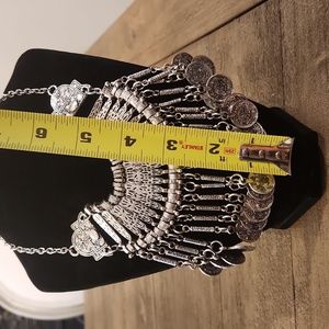 One of the coolest statement necklaces I have ever seen. Silver tone necklace that will be noticed by everyone you pass. This is a huge WOW piece. Measurements in pictures.