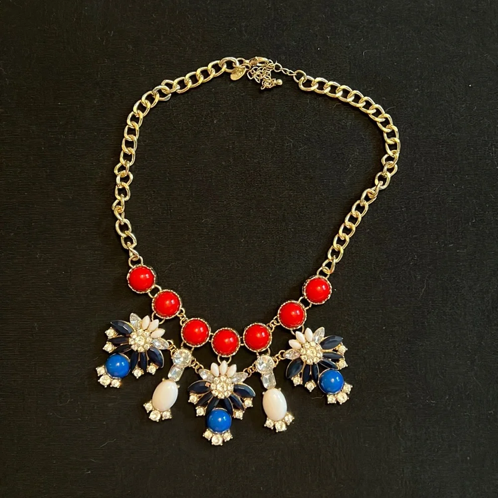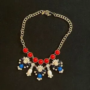 Red, white and blue statement necklace - Charming Charlie - gold chain is adjustable