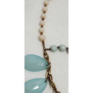 Statement Necklace & Earrings Set – Aqua Blue Teardrop Beads, Cream Floral...