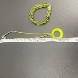 Elevate your jewelry collection with this stunning statement necklace and glass stone bracelet set! The vibrant green color is sure to make a statement, adding a pop of color to any outfit.